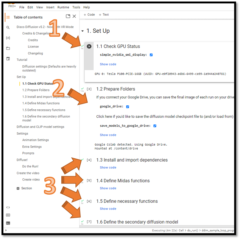 #1 - Launch Notebook & Check GPU - Launch the Disco Diffusion Google Colab Notebook by pressing the play button under section 1.1 Check CPU Status. This will launch your Google Colab runtime (if its not running already). Note: the GPU being used for your notebook. If no GPU is found then you will not be able to run this notebook.