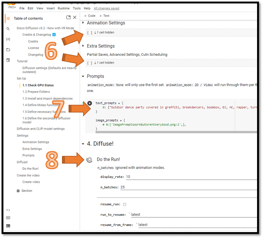 #8 - Diffuse ! - Get ready for some AI magic !! Press the play button to the left of the Do the Run! title directly under the 4. Diffuse title.